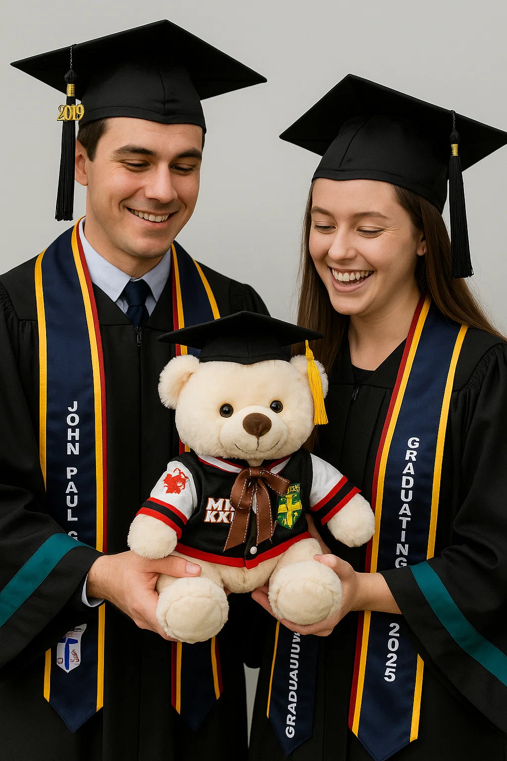 Our custom-made graduation gowns, sashes and signature bears that can be tailored with unique school-colour, school year, crest and even student names for a truly memorable touch.