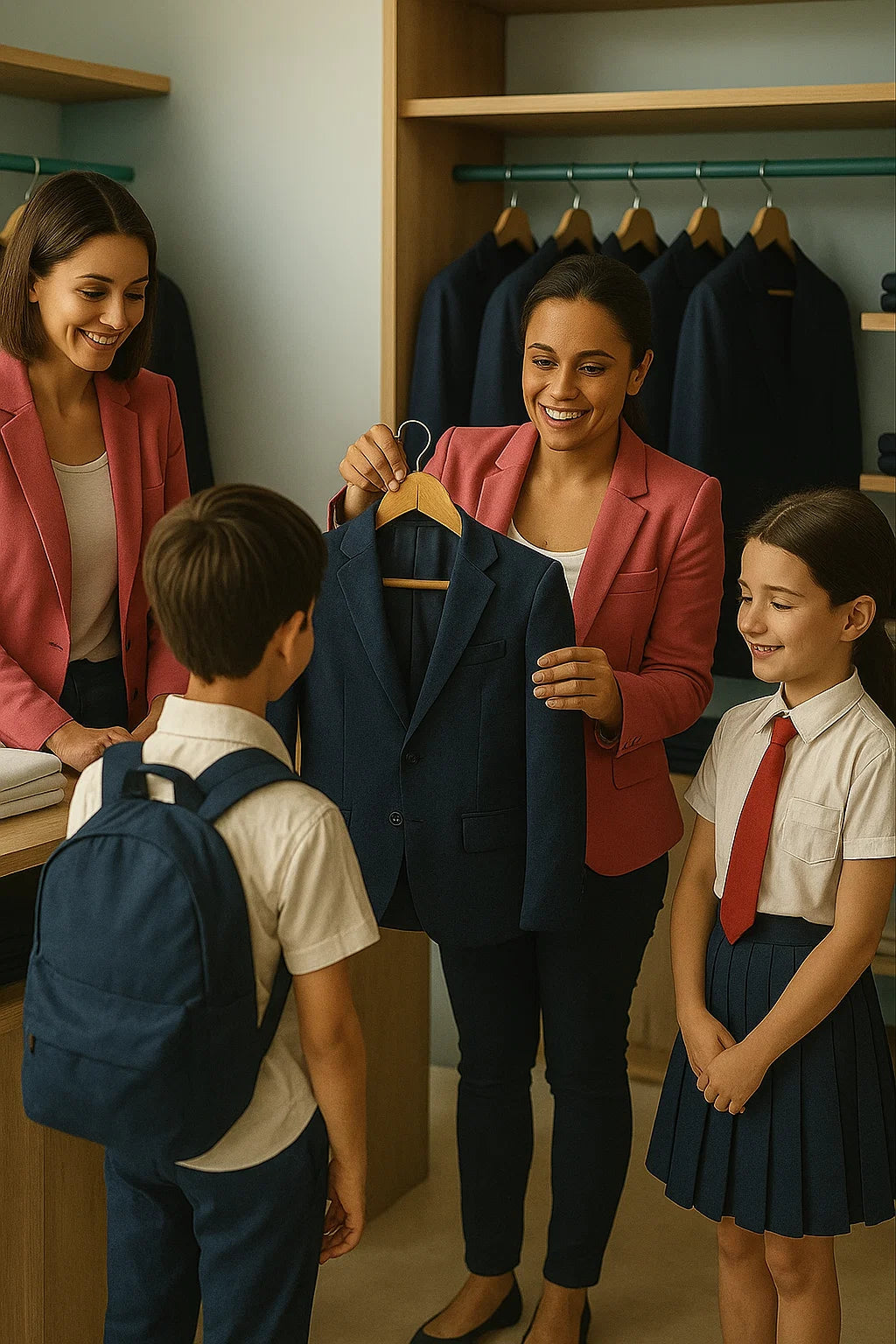 Our streamlined system ensures hassle-free uniform distribution with no overhead costs to your school. We offer a convenient retail outlet in Malaga where students can try on garments, or they can place orders online through our website—with fast and reliable delivery.