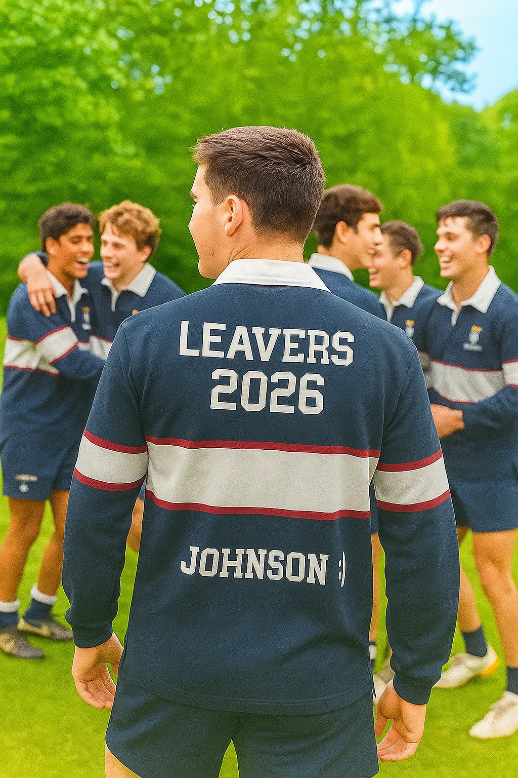 Our highly acclaimed custom-made rugby-style long sleeve leavers polos, offering fully bespoke patterns tailored to your school’s vision. Each garment is designed for comfort, style, and durability—perfect for lasting memories of the final school year.